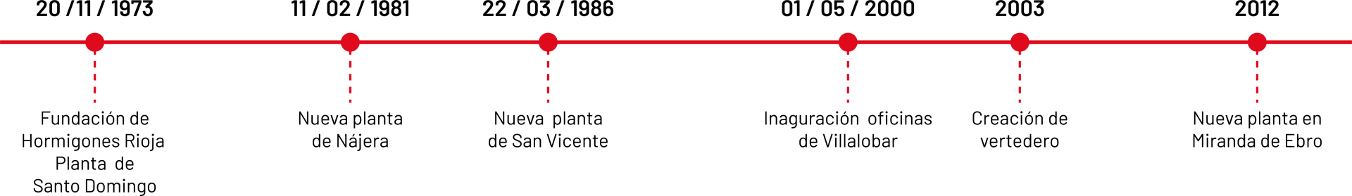 Hormigones Rioja S.A. fundada en 1973 por D. Dionisio Ruiz Ijalba, inicialmente dedicada a la fabricación de hormigón en masa y ampliando posteriormente a la extracción de áridos. Con una ampliación sucesiva de trabajo para prestar un servicio de alquiler de maquinaria. Disponemos una gran flota de camiones e instalaciones para prestar servicio: